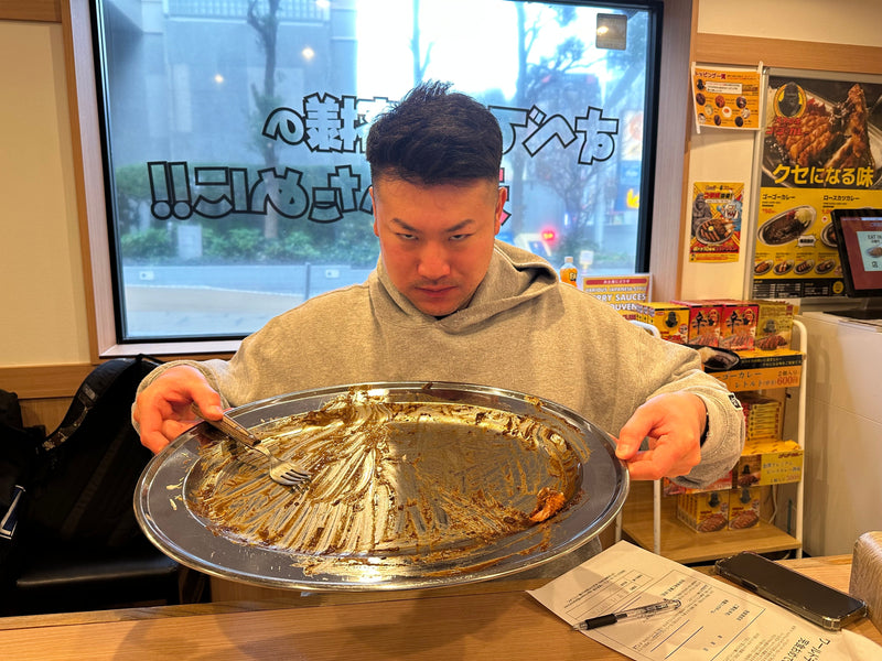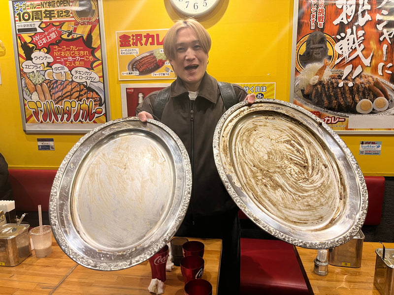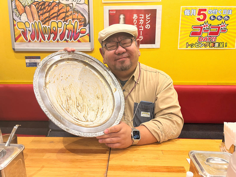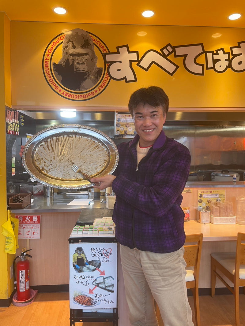 At GoGo Curry Meguro West Exit Branch (Tokyo), Katsuya finishes the World Champion Class meal!
